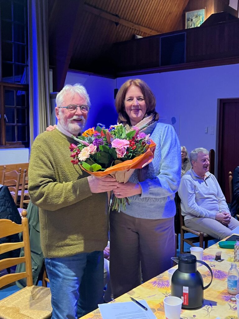 Tijdens de voorjaarsvergadering van de Stichting Jut van Breukelerwaard (de eigenaar van de Heidekapel) werden een aantal bestuursleden in het zonnetje gezet. Willem te Hennepe gaat de Stichting na bijna 20 jaar verlaten en Dinie van Eijbergen is 40 jaar lid!
